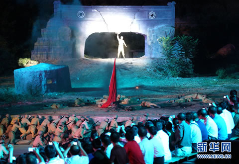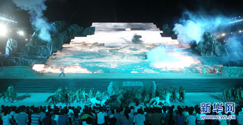 JpF河北省歌舞劇院演藝有限公司 河北省歌舞劇院院長袁桂岐介紹:“演出搭建的舞臺面積達3000平方米,最高處18米,觀眾看臺面積3000平方米,舞臺規模在我省史無前例。共有20余個單位的1500余名演職人員參與了本次演出,參與單位之廣、演出人員之多,堪稱我省演出之最。”JpF河北省歌舞劇院演藝有限公司 另外,此次演出的音響是參與過北京奧運會開閉幕式的設備,效果充滿震撼力;燈光采用了目前國內最先進的技術,其中每一個小設備都造價不菲,演出燈光營造出的現場效果給觀眾身臨其境的感覺。JpF河北省歌舞劇院演藝有限公司 JpF河北省歌舞劇院演藝有限公司 (圖片來源:新華網)JpF河北省歌舞劇院演藝有限公司 2/2 首頁 上一頁 1 2