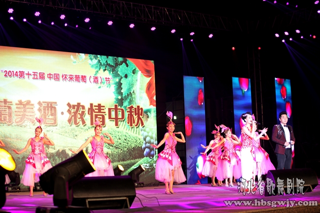 第十五屆中國·懷來葡萄(酒)節(jié)暨葡萄美酒濃情中秋廣場文藝演出2014年9月6日在懷來縣文化公園隆重舉行。品味葡萄美酒,暢游京北懷來,河北省歌舞劇院為本次葡萄(酒)節(jié)精心打造了一臺集歌舞、說唱、魔術(shù)等綜合性的文藝晚會,并為本次葡萄(酒)節(jié)精心創(chuàng)編主題歌舞《為中國夢釀造芬芳》。3gu河北省歌舞劇院演藝有限公司