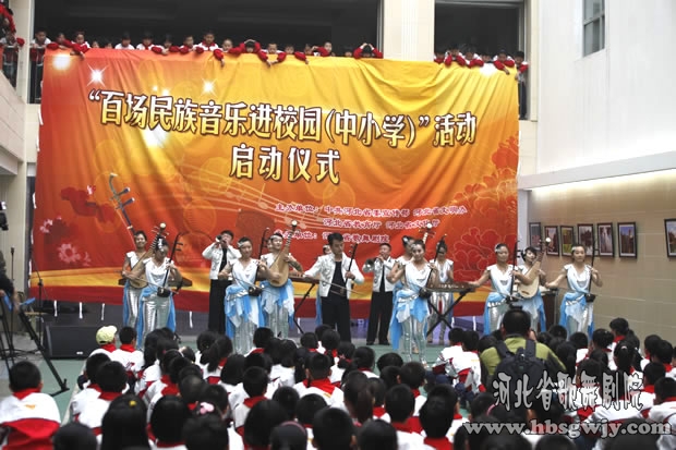 民族音樂進校園活動2014年10月20日在河北師大附屬小學正式啟動。本次活動將引領中小學生了解民族音樂文化藝術形式,滿足精神文化生活需求,建設“向真、向善、向美、向上”的校園文化,優(yōu)化藝術教育環(huán)境,進一步理解民族音樂在中華文化傳承中所承載的內涵,提升他們的綜合素質。FeE河北省歌舞劇院演藝有限公司