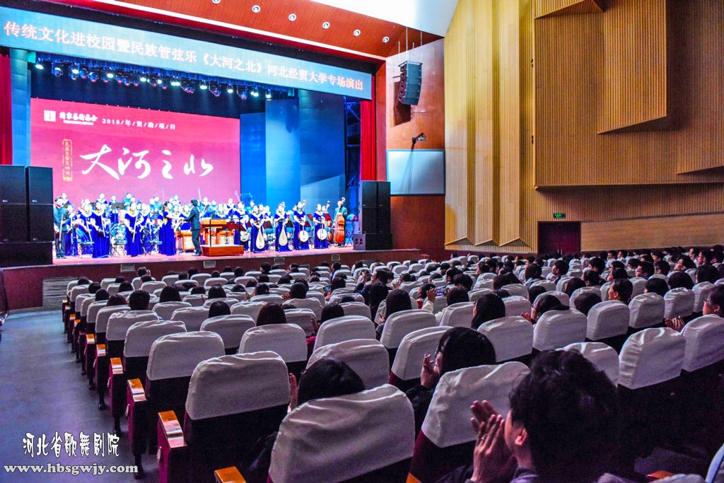 2018年11月4號-6日,由2018年度國家藝術基金資助項目、河北省歌舞劇院演藝有限公司創排打造的大型民族管弦樂《大河之北》在河北傳媒學院警安校區、興安校區、河北經貿大學圓滿完成了第一階段的4場高雅藝術進校園活動,演出給學校的教職員工帶來了一場豐富的視聽盛宴。