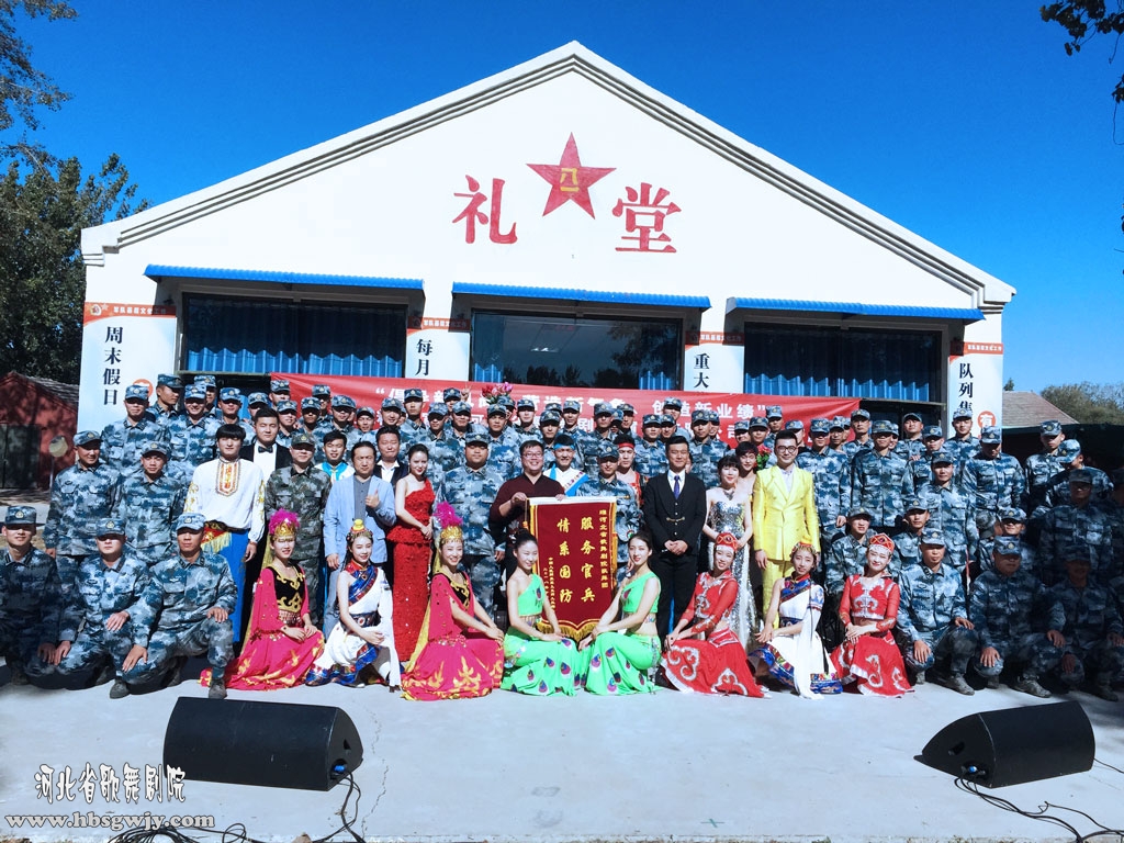 11月2日至10號歌舞團六進演出走進白求恩士官培訓學院等地進行慰問演出。本次演出節目豐富多彩,有舞蹈、獨唱、器樂、對唱等等,演出現場人頭攢動,呼聲連連,掌聲陣陣,熱鬧非凡。熱情的開場舞蹈《美麗河北》讓現場的氣氛迅速熱烈、融洽起來,喜慶的表演舞《嬉雨》、《年年有余》、《一頂軍帽》等多個舞蹈表達了對美好生活的贊美之情,一曲男聲獨唱《軍歌嘹亮》讓戰士們的思緒回到激情澎湃的年代,獨唱《中國時間》讓十九大精神深入人心,女生獨唱《當兵光榮》得到官兵們的陣陣掌聲,這些溫馨的旋律、悅耳的歌聲、快樂的舞姿吸引著在場每個人,節目中間與觀眾的互動環節更是將整場演出推向高潮。