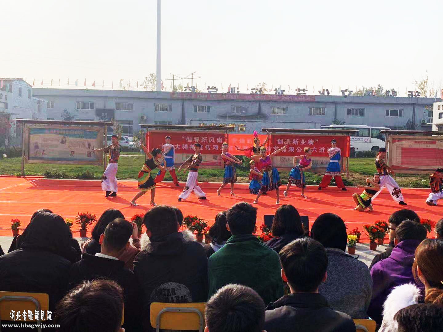 河北省歌舞劇院演藝有限公司開展了系列“倡導新風尚、營造新氣象、創造新業績”為主題的十九大精神宣傳六進活動。繼續深入廠礦、社區、學校等場地,為廣大群眾帶去一場場精彩的文化演出活動。aN1河北省歌舞劇院演藝有限公司