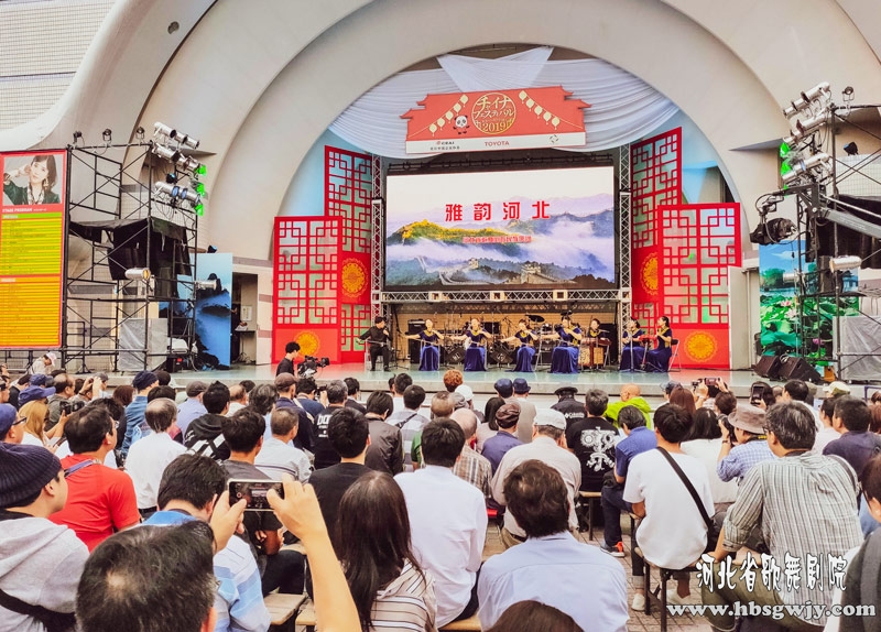 2019年9月21日至22日,河北省歌舞劇院民族樂團在東京代代木公園,參加了為慶祝中華人民共和國成立70周年舉辦的“中國節”的演出活動。中國駐日大使孔鉉佑、日本前首相福田康夫、中國公共外交協會會長吳海龍、日本公明黨代表山口那津男、外務大臣政務官中山展宏、著名旅日華人歌手陳美齡等中日嘉賓致辭。日本華僑華人聯合總會會長廖雅彥、全日本華僑華人聯合會會長賀乃和等嘉賓出席開幕式,并觀看了演出活動。leI河北省歌舞劇院演藝有限公司