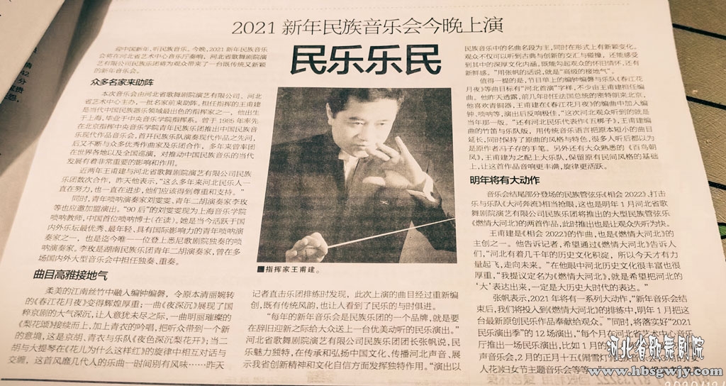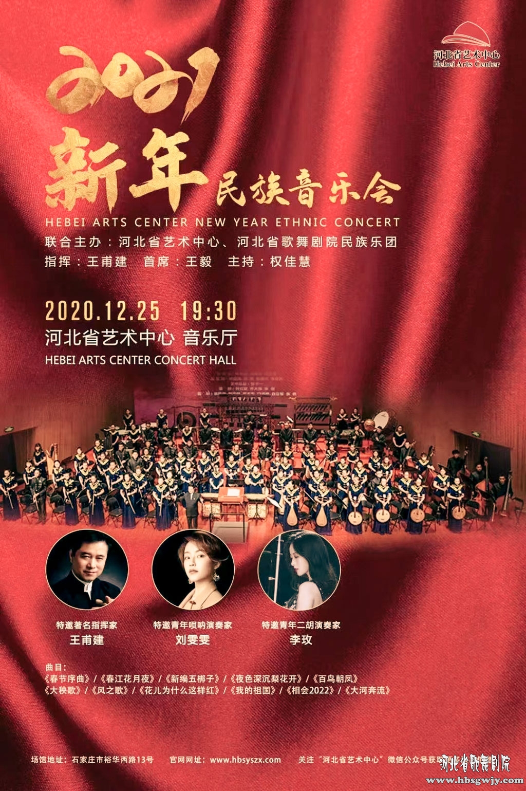 迎中國新年,聽民族音樂。2020年12月25號晚《2021新年民族音樂會》在河北省藝術中心音樂廳奏響,河北省歌舞劇院民族樂團再次為省會人民帶來了一臺新穎的新年音樂會。