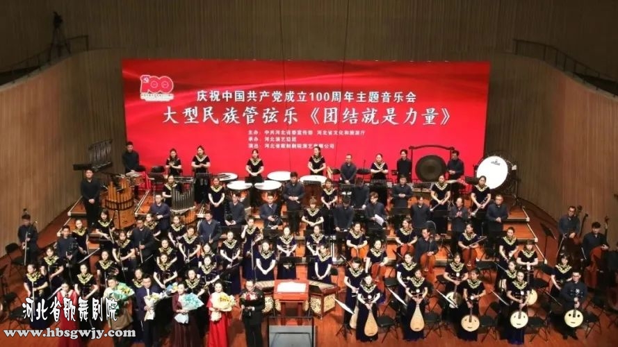 民族管弦樂《團結就是力量》以落實習近平總書記2021年2月7日給河北省平山縣西柏坡鎮北莊村全體黨員回信,勉勵大家“在全面建設社會主義現代化國家新征程上,希望你們堅決響應黨中央號召,充分發揮先鋒模范作用,把鄉親們更好團結起來、凝聚起來”為創作基礎,由河北省歌舞劇院演藝有限公司創排的一臺經典民族管弦樂。作品以中國共產黨帶領中國人民團結奮斗的光輝歷程與取得的偉大勝利、偉大成就為主題,以民族管弦樂為載體,用極其富中國特色的民族音樂語言,讓人民群眾在欣賞民族音樂、弘揚優秀傳統文化的同時憶起紅色經典,凝聚建設中國特色社會主義、筑夢兩個一百年的磅礴力量。 |