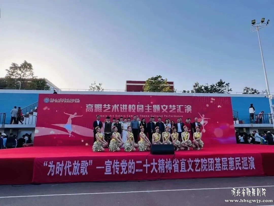 河北省歌舞劇院為豐富群眾精神文化生活,以“讓群眾共享文化發展成果”為出發點和落腳點,秉持“文化惠民”宗旨,積極開展文化惠民演出。日前,我院演員走進河北化工醫藥職業技術學院、文安縣實驗中學、文安縣興隆宮鎮回回營村、文安縣左各莊鎮西曹莊村、文安縣左各莊鎮福新村、新樂市實驗學校、河北交通職業技術學院等地,向廣大人民群眾送去精彩紛呈的文藝節目。p8J河北省歌舞劇院演藝有限公司