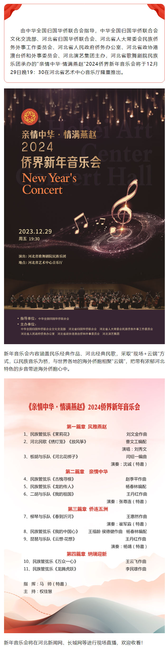 “親情中華·情滿燕趙”2024僑界新年音樂會即將上演