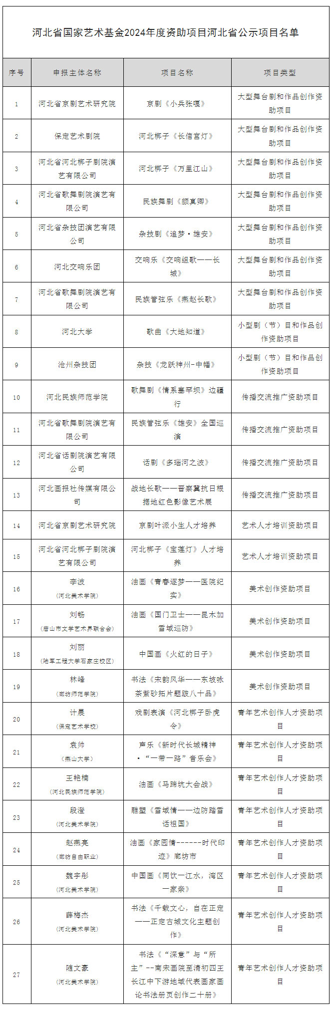 翻番!河北27個項目入選國家藝術基金2024年度資助項目名單公示