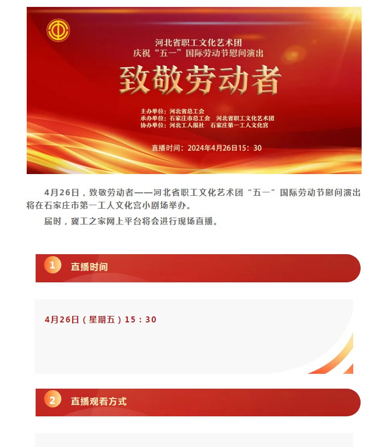 直播預告|河北省職工文化藝術團慶?!拔逡弧眹H勞動節慰問演出活動即將拉開帷幕