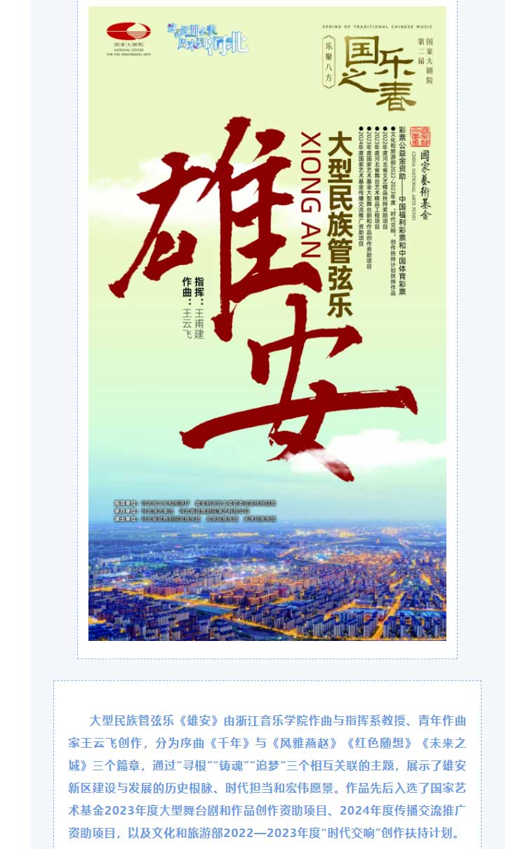 大型民族管弦樂《雄安》圓滿完成國家大劇院第二屆“國樂之春”系列演出并啟動全國巡演