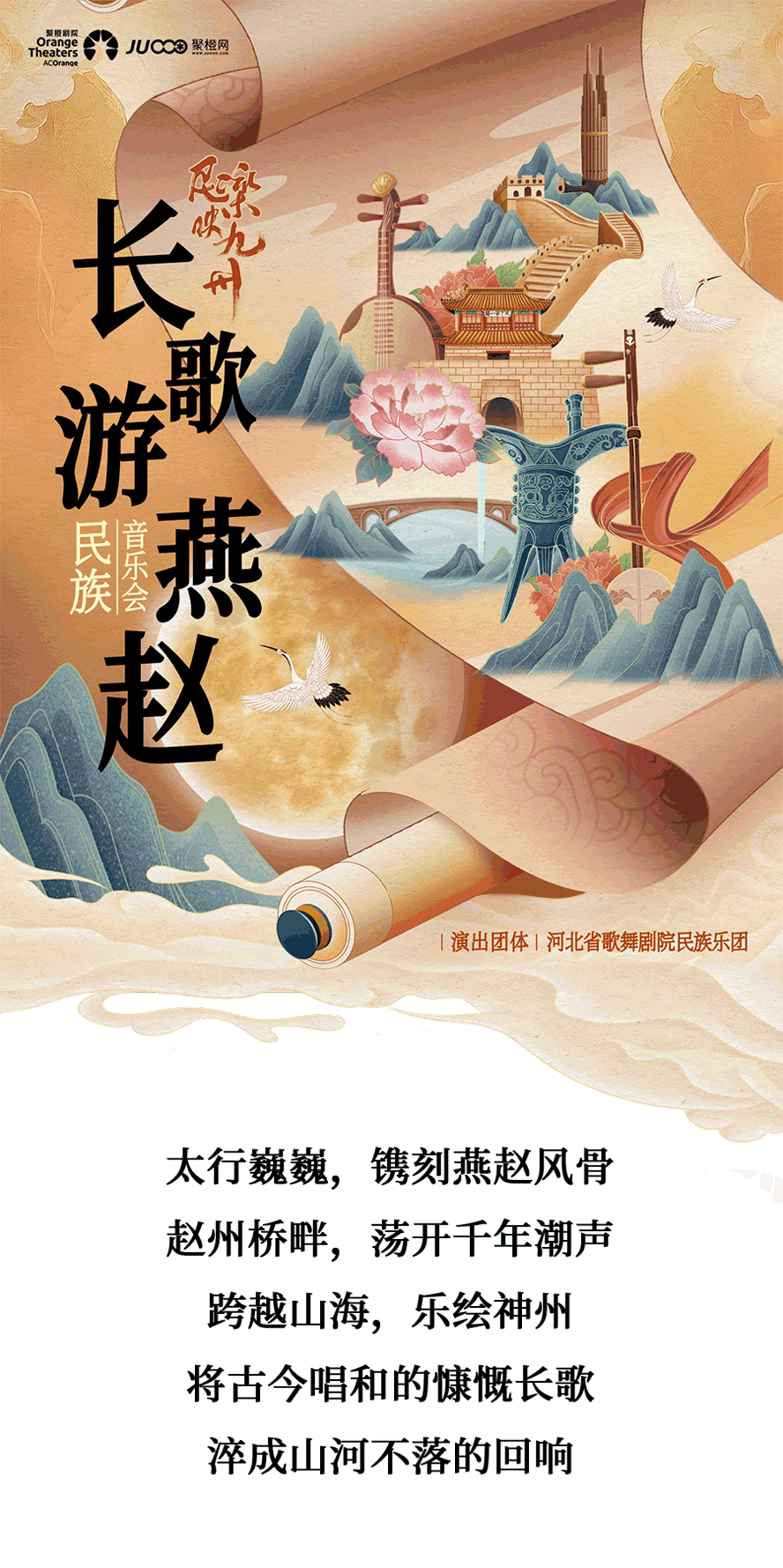 | 整場演出以“神游”為韻,帶領觀眾開啟一場穿越千年的音樂之旅——從太行云海之巔到渤海浪濤之畔,從易水寒風的慷慨壯歌到冀中平原的歡騰慶典。每一個音符都在訴說這片土地的血脈傳承,每一段旋律都在描繪這方水土的魂魄神韻。讓我們在絲竹管弦的交響中,共同觸摸河北文化最深邃的脈動,感受燕趙大地最動人的氣韻風華。 河北歌舞劇院民族樂團將奏響千年燕趙之韻,演繹淳樸民風之聲,譜寫慷慨豪邁之魂,以音為媒,傳頌河北大地的文化瑰寶與時代風采! |