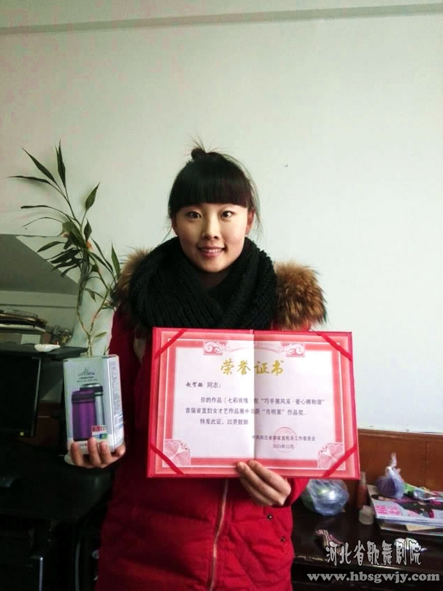 為進(jìn)一步弘揚(yáng)社會(huì)主義核心價(jià)值觀,豐富我院女職工業(yè)余文化生活,展示聰明才智,激發(fā)其奮發(fā)向上的創(chuàng)造活力,院工會(huì)組織女職工參加了省直工會(huì)舉辦的首屆省直婦女“巧手展風(fēng)采·愛(ài)心鑄和諧”才藝作品展。12月份我院女職工王飛飛頗見(jiàn)功底的彩色線描作品《少女》在此次才藝展活動(dòng)中榮獲書(shū)畫(huà)類(lèi)三等獎(jiǎng);王飛飛的另一部富有民族特色的線描作品《樹(shù)下》榮獲書(shū)畫(huà)類(lèi)優(yōu)秀獎(jiǎng);女職工趙賀璐惟妙惟肖、針?lè)▼故斓氖掷C作品《七彩玫瑰》,榮獲 “月明星”作品獎(jiǎng),她們?yōu)閯≡籂?zhēng)得了榮譽(yù)。62x河北省歌舞劇院演藝有限公司
