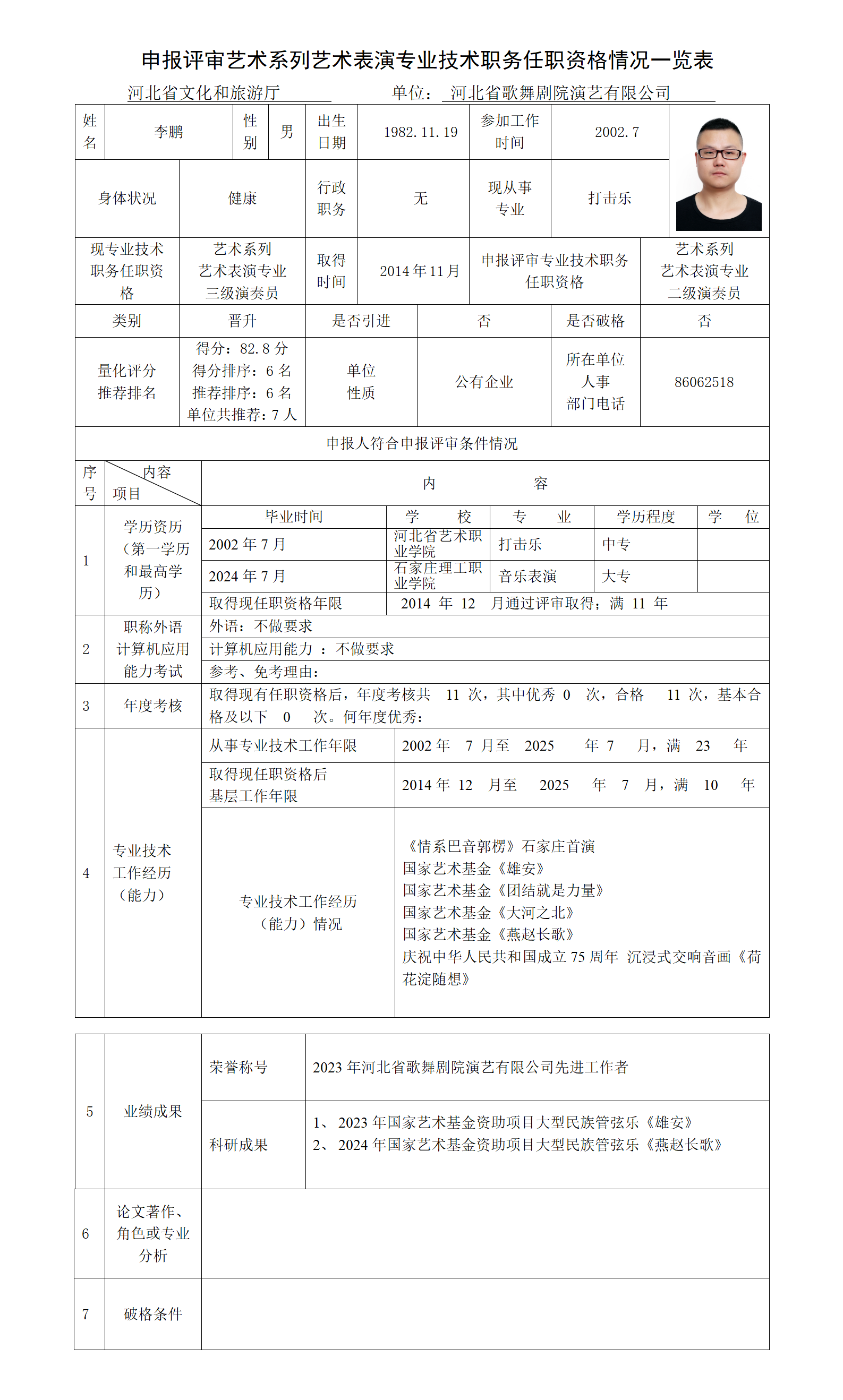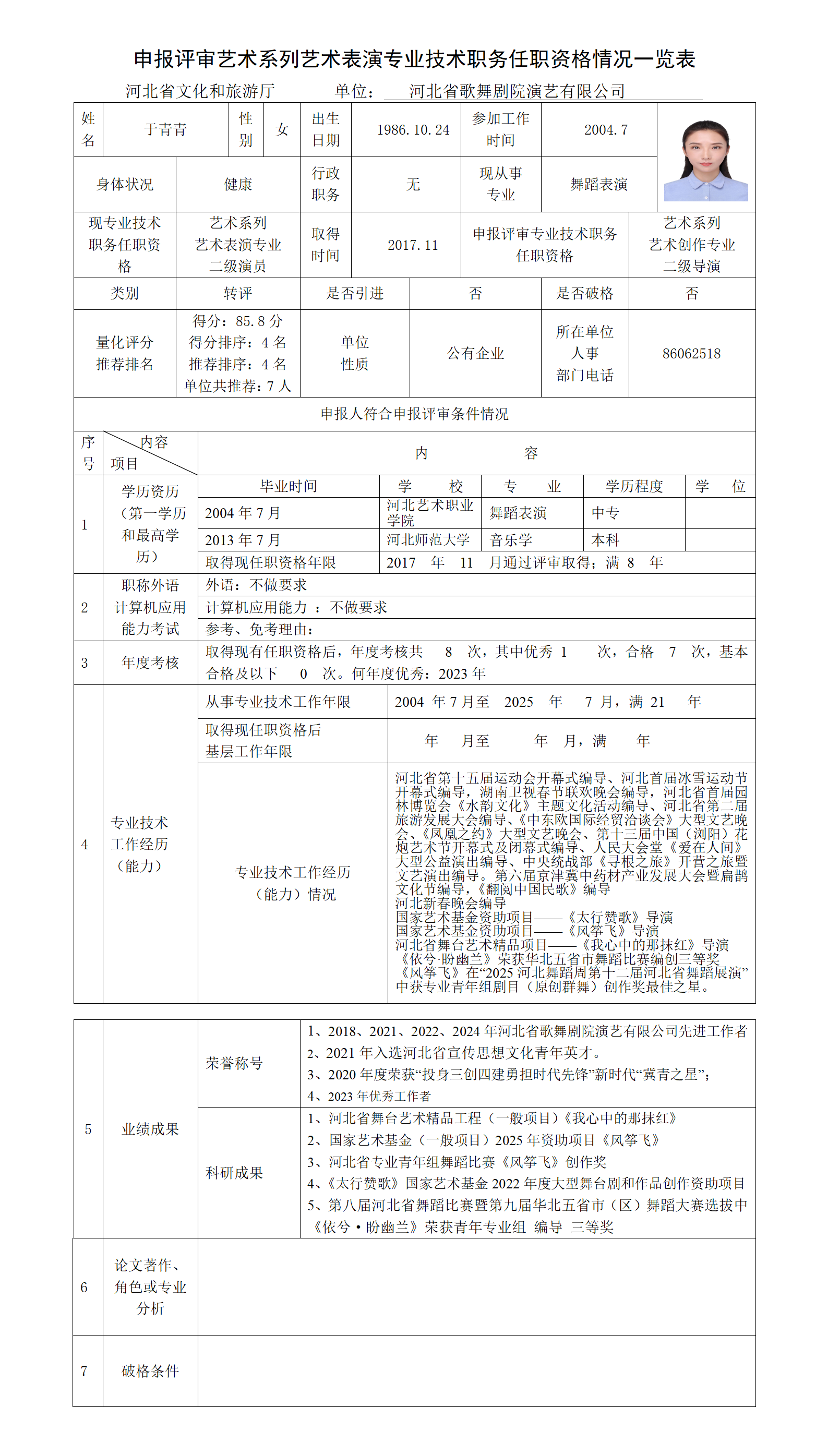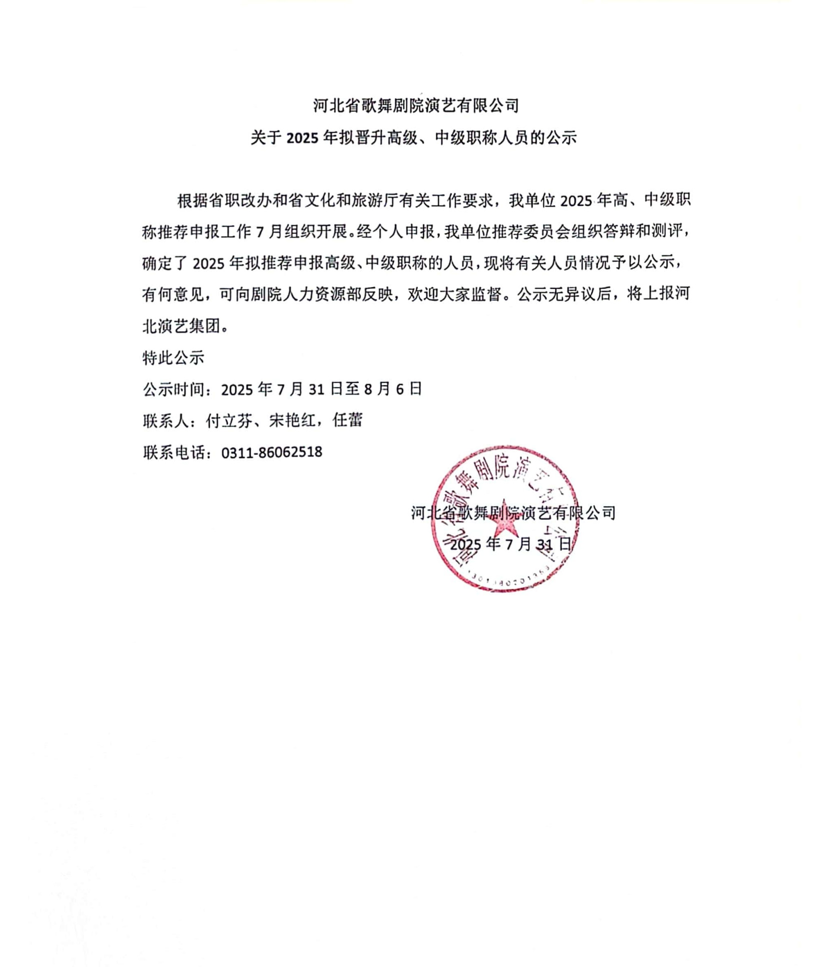 河北省歌舞劇院演藝有限公司 關(guān)于2025年擬晉升高級、中級職稱人員的公示