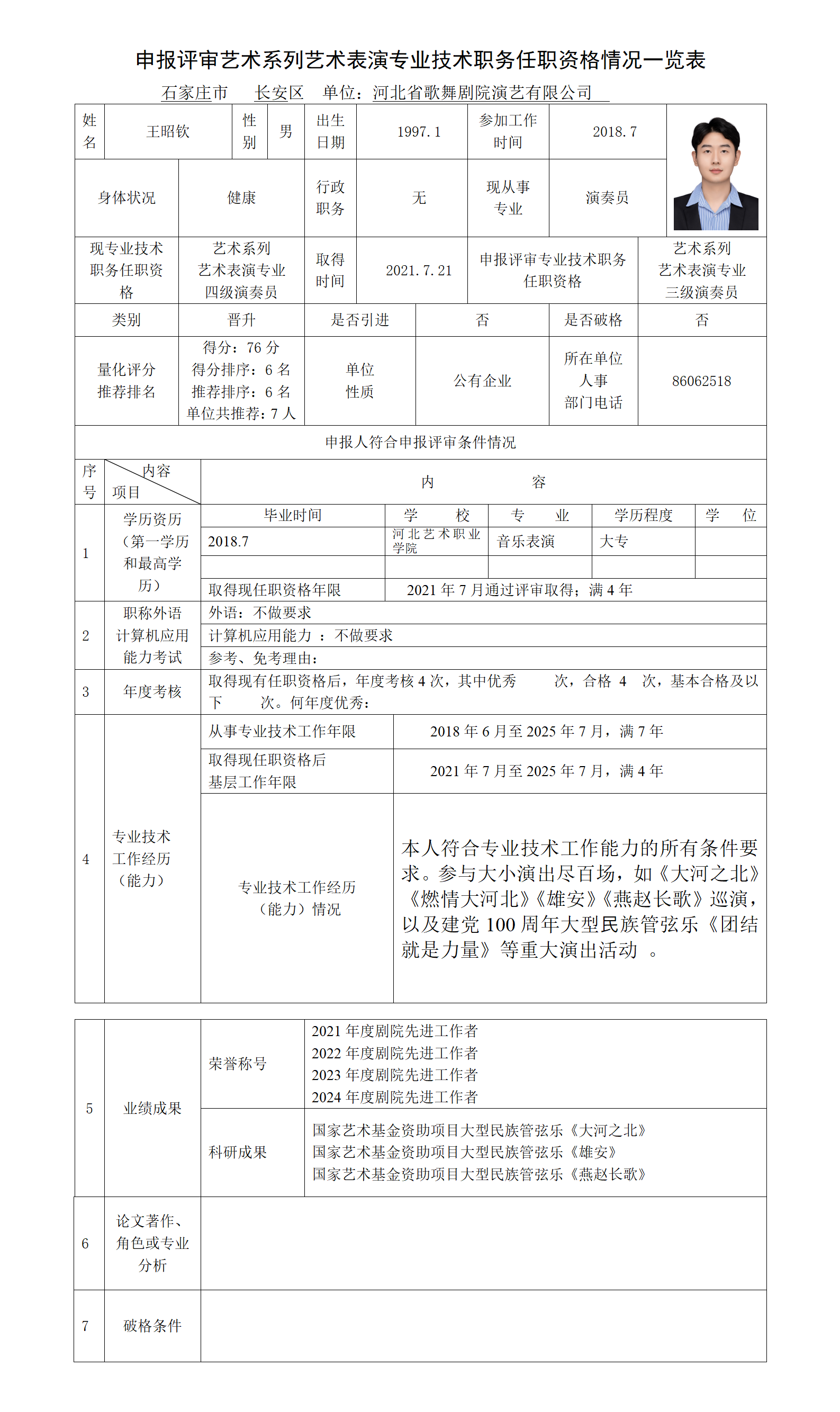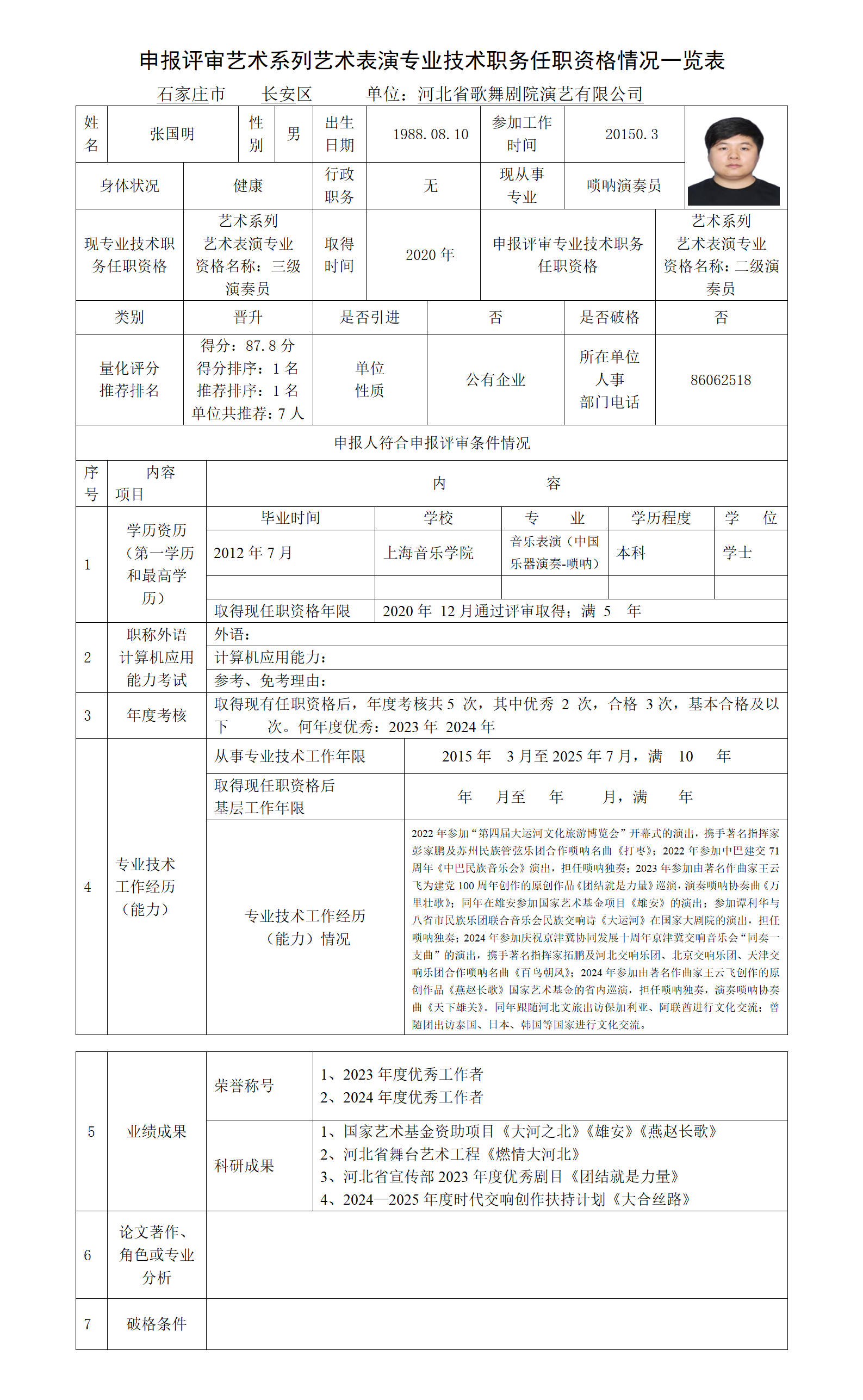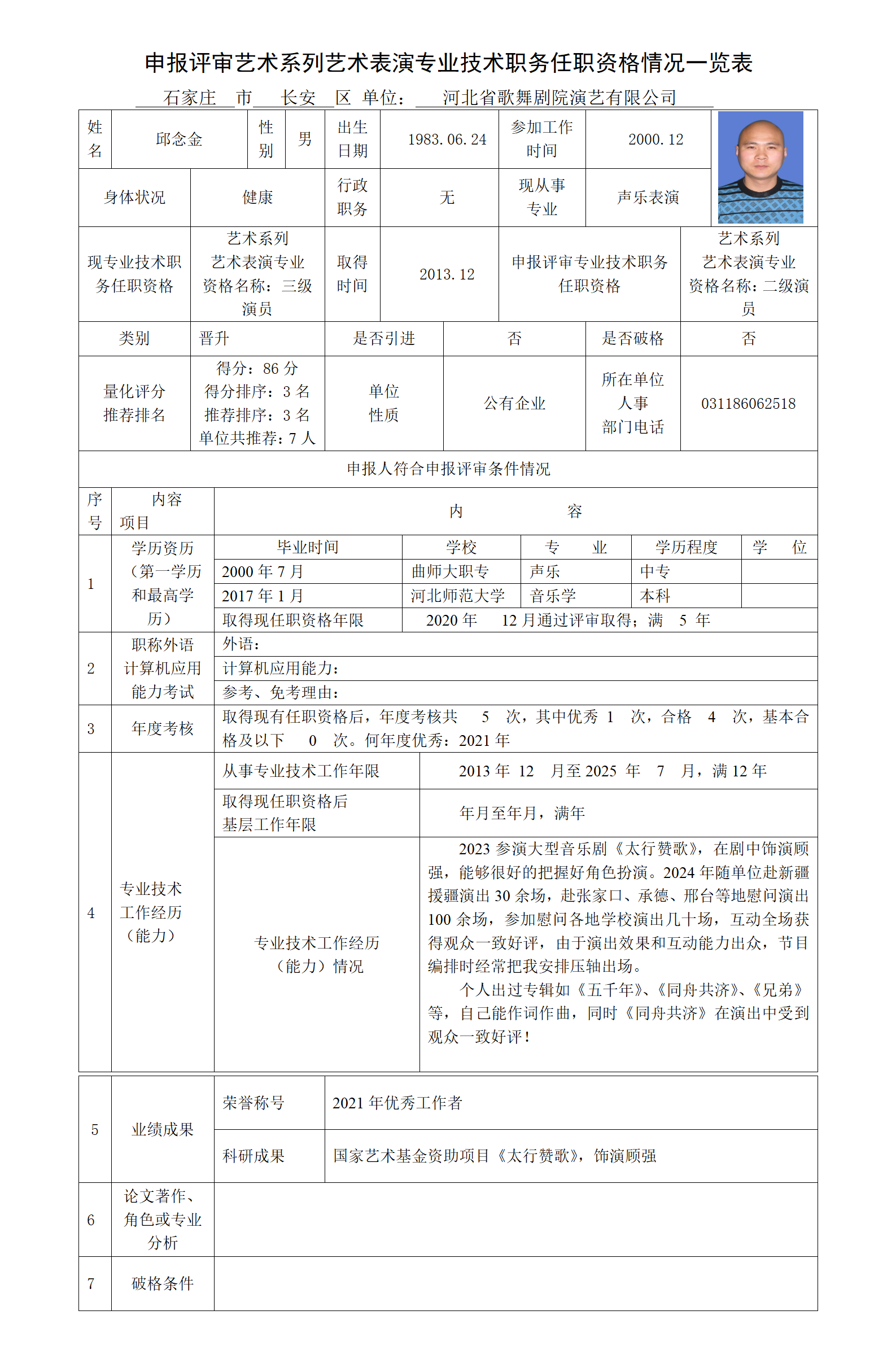 河北省歌舞劇院演藝有限公司 關(guān)于2025年擬晉升高級、中級職稱人員的公示