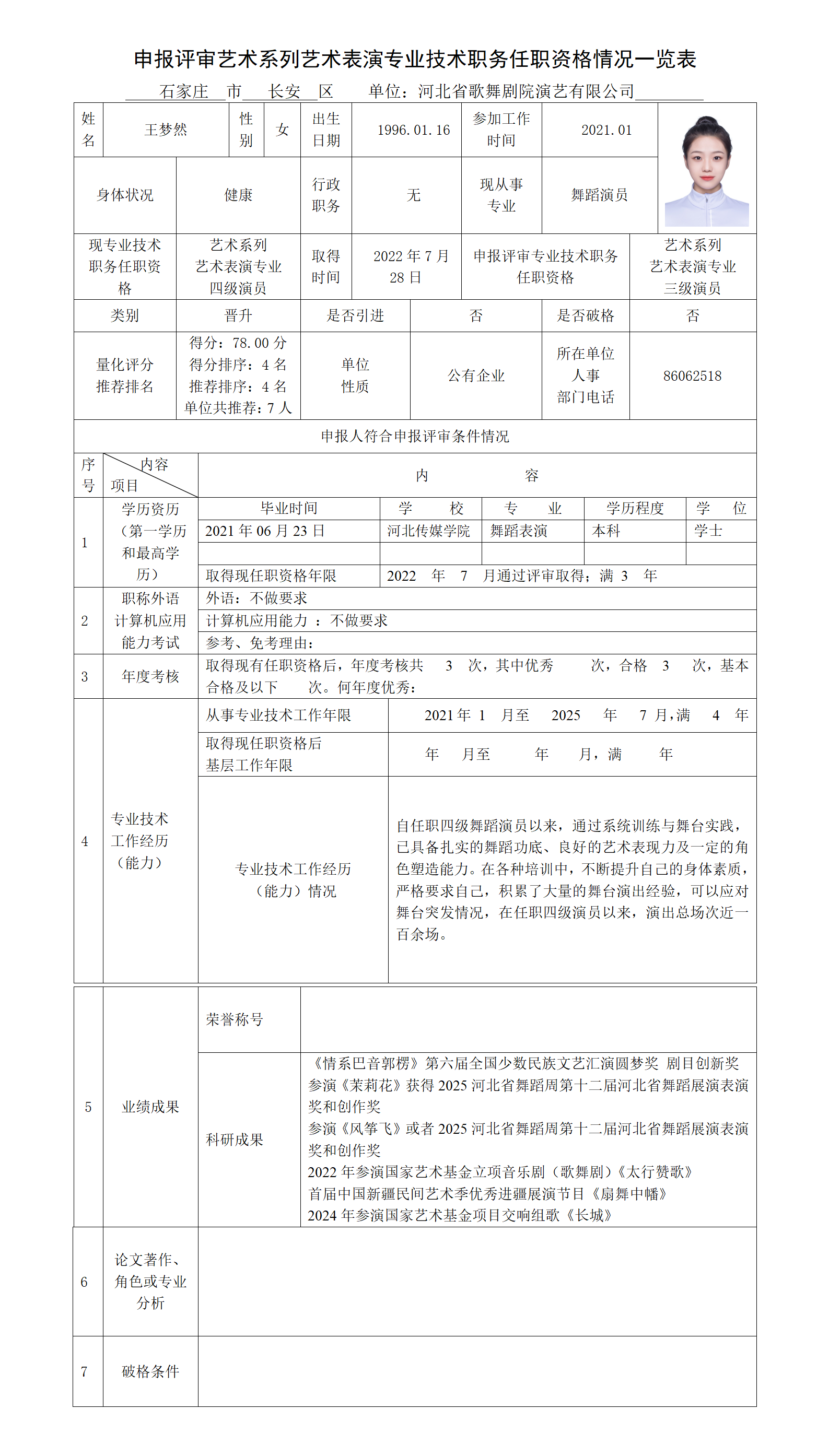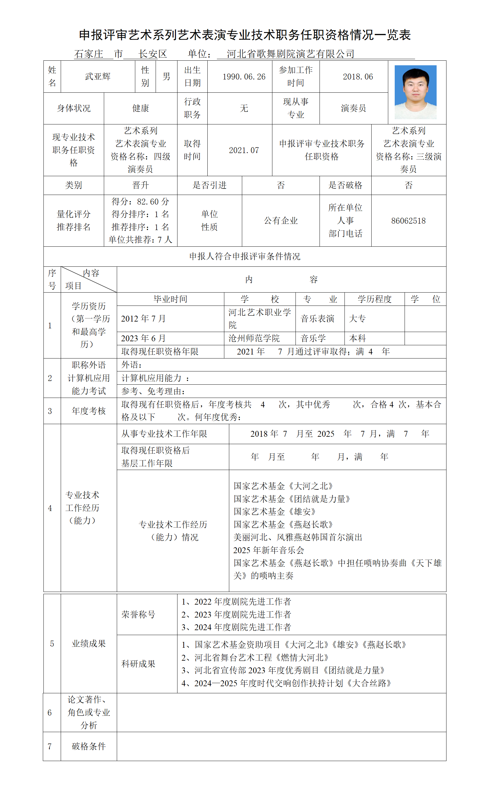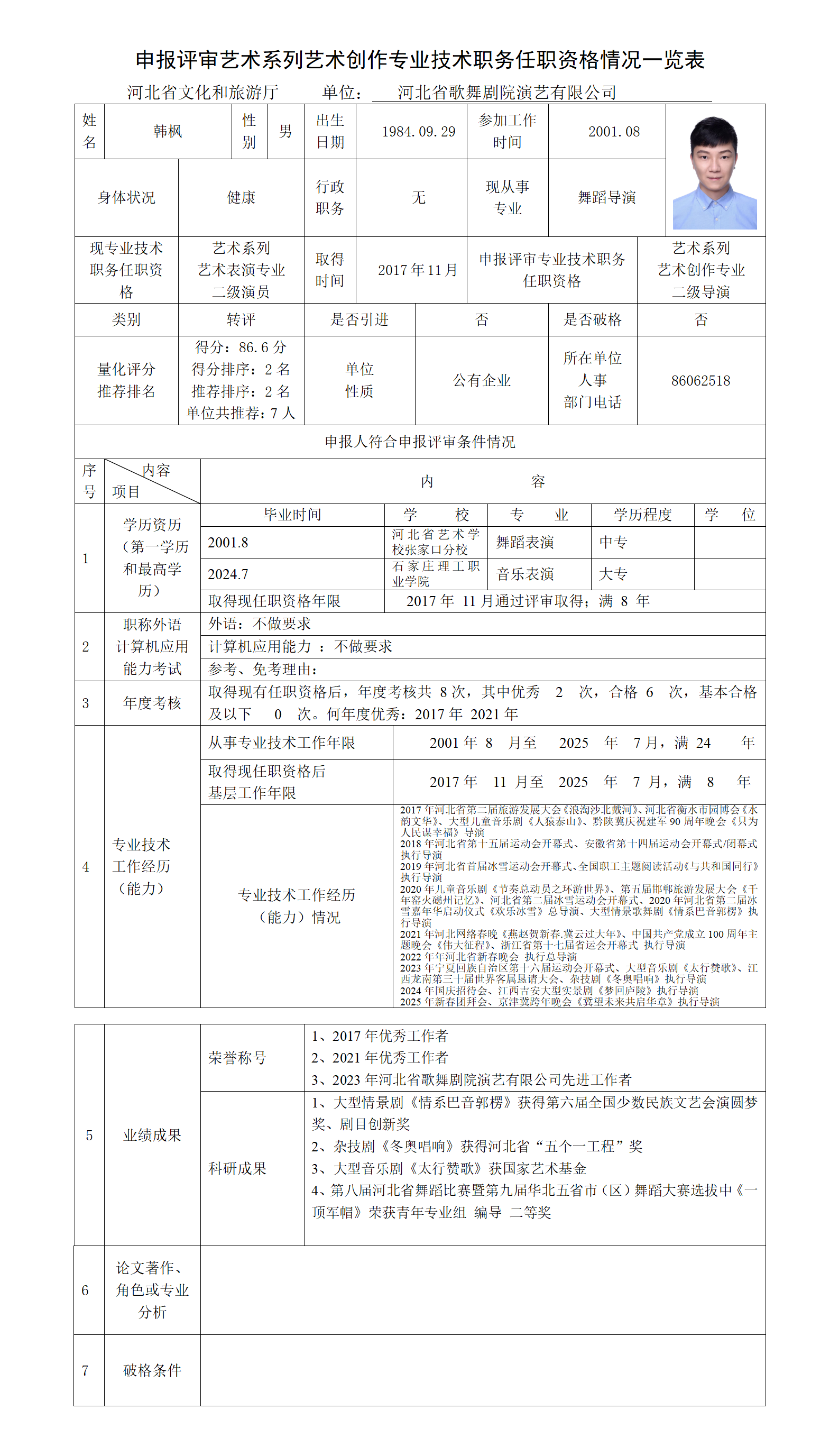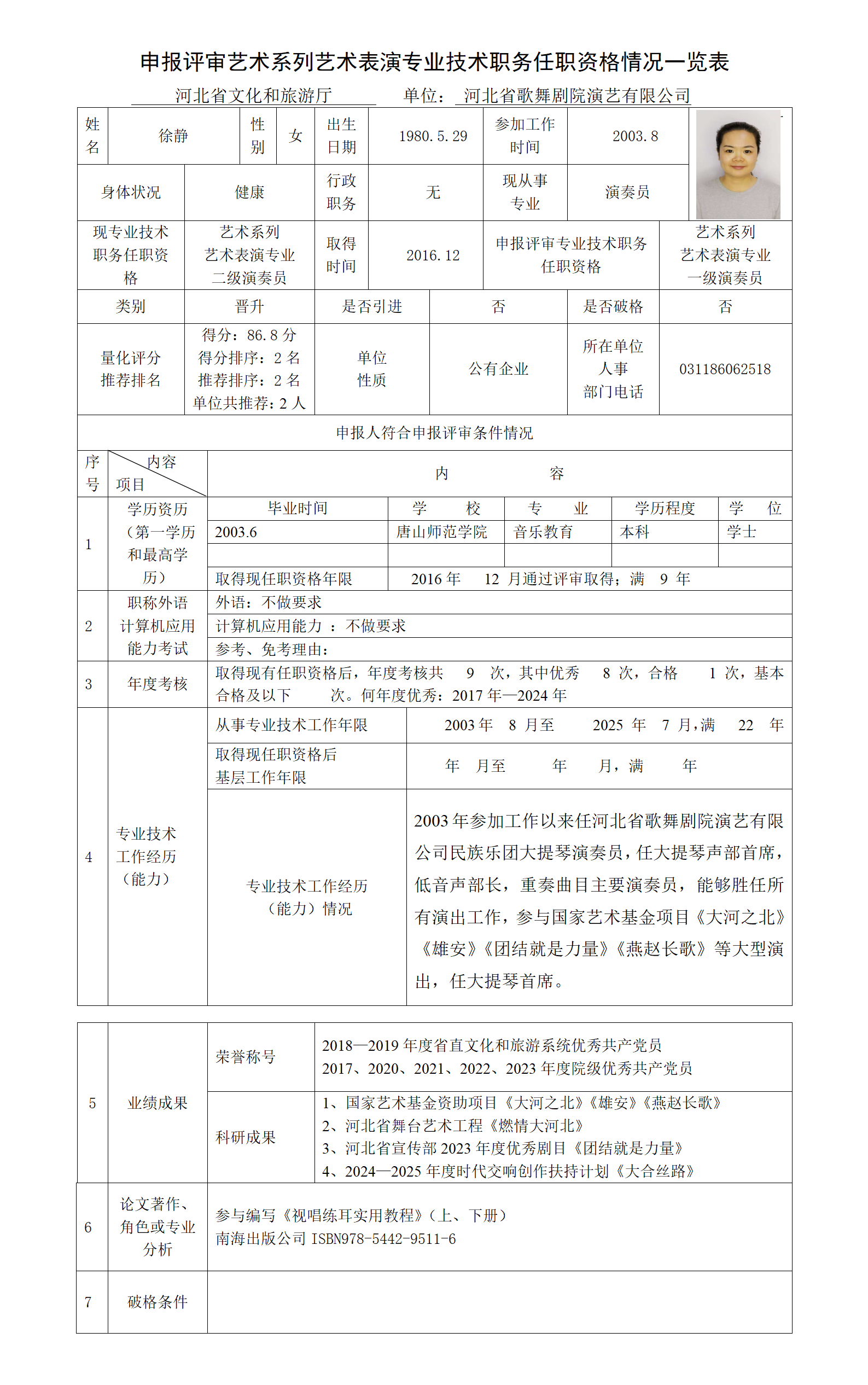 一覽表:副高nwD河北省歌舞劇院演藝有限公司